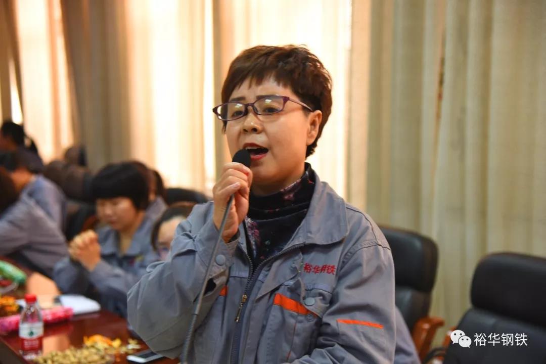 工會委員李向芬代表廣大女職工發表倡議書,號召大家加強學習,提升素質,愛崗敬業,團結奮進,發揚不怕苦不怕累的精神,做有文化、有紀律、有素質的時代新女性,為企業的發展貢獻自己的力量。與會女職工紛紛發言,表達自己的感想,感謝集團和董事長對女職工的關懷,切身感受到了冀南鋼鐵這個大家庭的溫暖,有歸屬感和榮譽感。